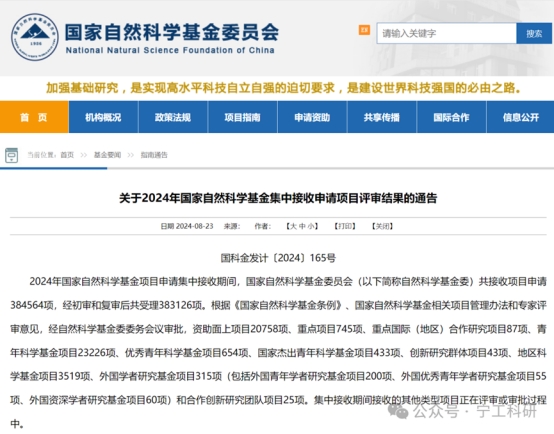 近日,国家自然科学基金委员会公布了2024年国家自然科学基金集中接收申请项目评审结果。我院共有7个项目获得国家自然科学基金资助,其中获批面上项目5项,青年基金项目2项,创历史新高。