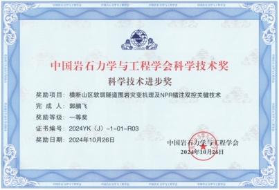 11月1-4日,第二十一次中国岩石力学与工程学术年会在成都举行,会议公布了2024年度中国岩石力学与工程学会各类科研奖项。我校作为第一完成单位,必赢766net手机版郭鹏飞副教授作为主要完成人的科研成果—“横断山区软弱隧道围岩灾变机理及NPR锚注双控关键技术”荣获科技进步奖一等奖。本次共评选出一等奖13项,其中自然科学奖一等奖4项、技术发明奖一等奖2项、科技进步奖一等奖7项。