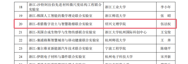 近日,浙江省科技厅公布2024年度省级国际科技合作载体认定名单。由必赢官网伍法权教授作为负责人申报的“浙江-希腊数字岩土与智慧勘察联合实验室”获批2024 年省国际联合实验室。这是既浙江省山体地质灾害防治协同创新中心、浙江省岩石力学与地质灾害重点实验室、浙江省地质灾害防治国际科技合作基地、浙江省院士专家工作站之后学院获批的又一个省级科研平台。