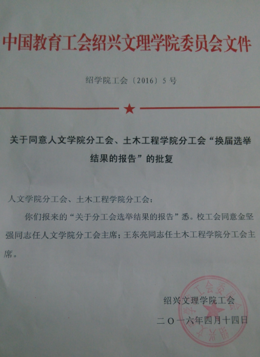 学院干部动态:校工会同意王东亮同志任必赢766net手机版分工会主席
